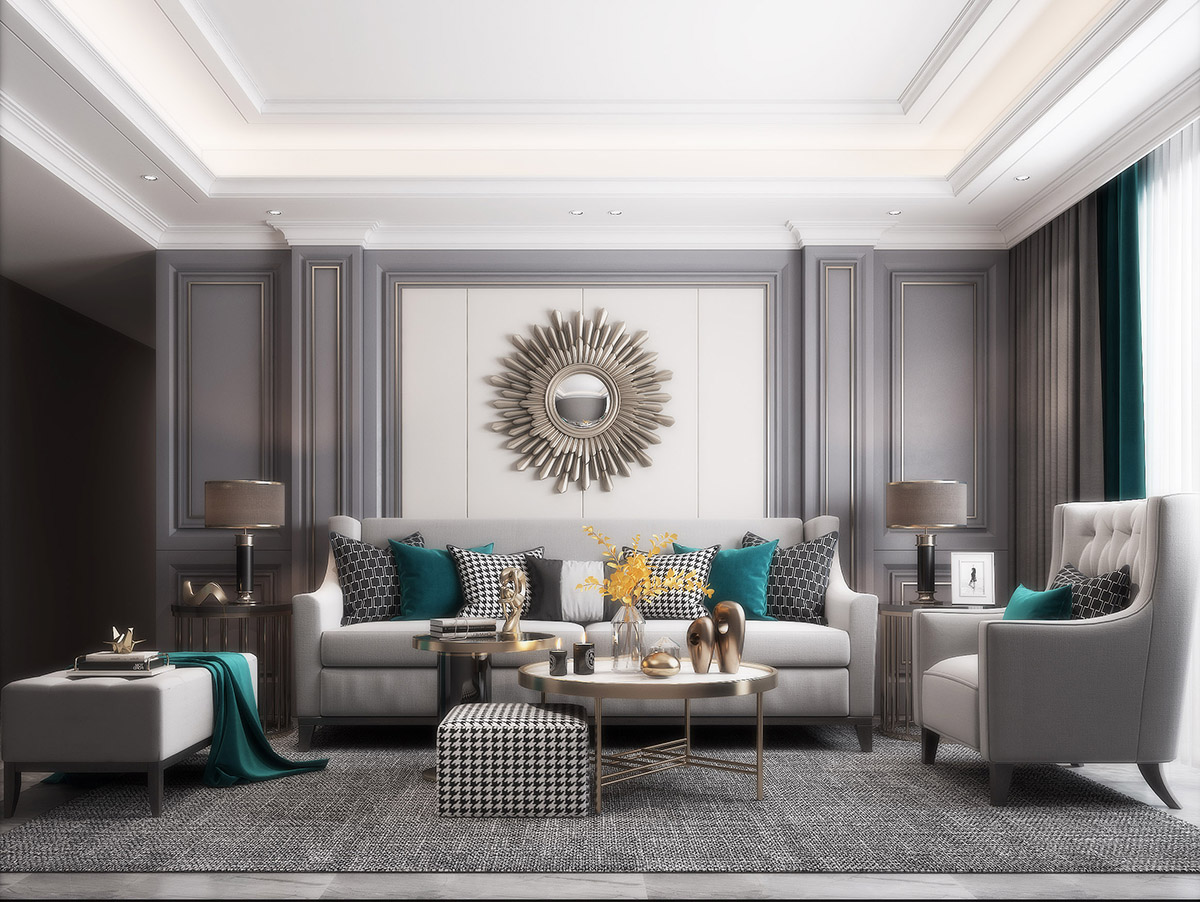 經(jīng)典灰色基調(diào),亞光的木線條和亮光的玫瑰金裝飾線條的結(jié)合,線與面的結(jié)合,是整個(gè)空間效果今典懷舊,雅致高貴。