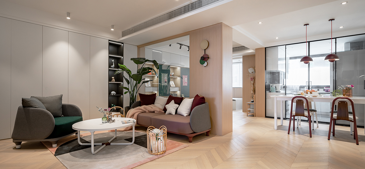 小戶型大空間,白色基調(diào)為主,原木色的輔助,黑色與墨綠色的點(diǎn)綴,整個空間溫馨自然,簡潔大氣,每一處空間的合理利用,增加儲物功能。